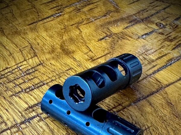 The indicator lines allow you to have a solid reference for how much you rotate the brake to get the perfect recoil pattern. Once you have it found simply use the Allen wrench to tighten the collar down onto the brake. Now you can torque your brake on and off and it will come back to the same spot every time.